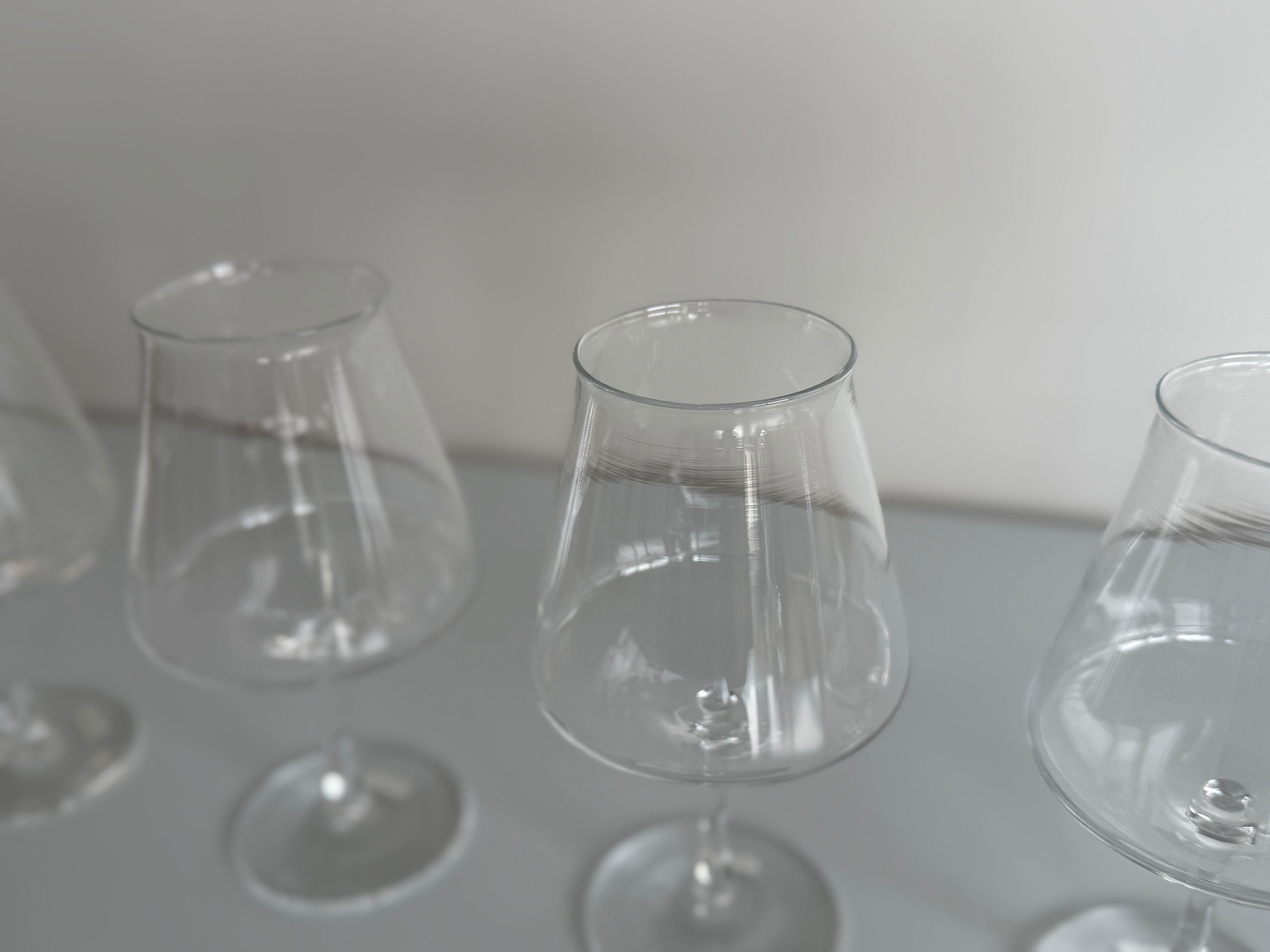 ステムが短めで手に取りやすく、薄く滑らかな口当たりがより一層ワインの味を引き立てます。