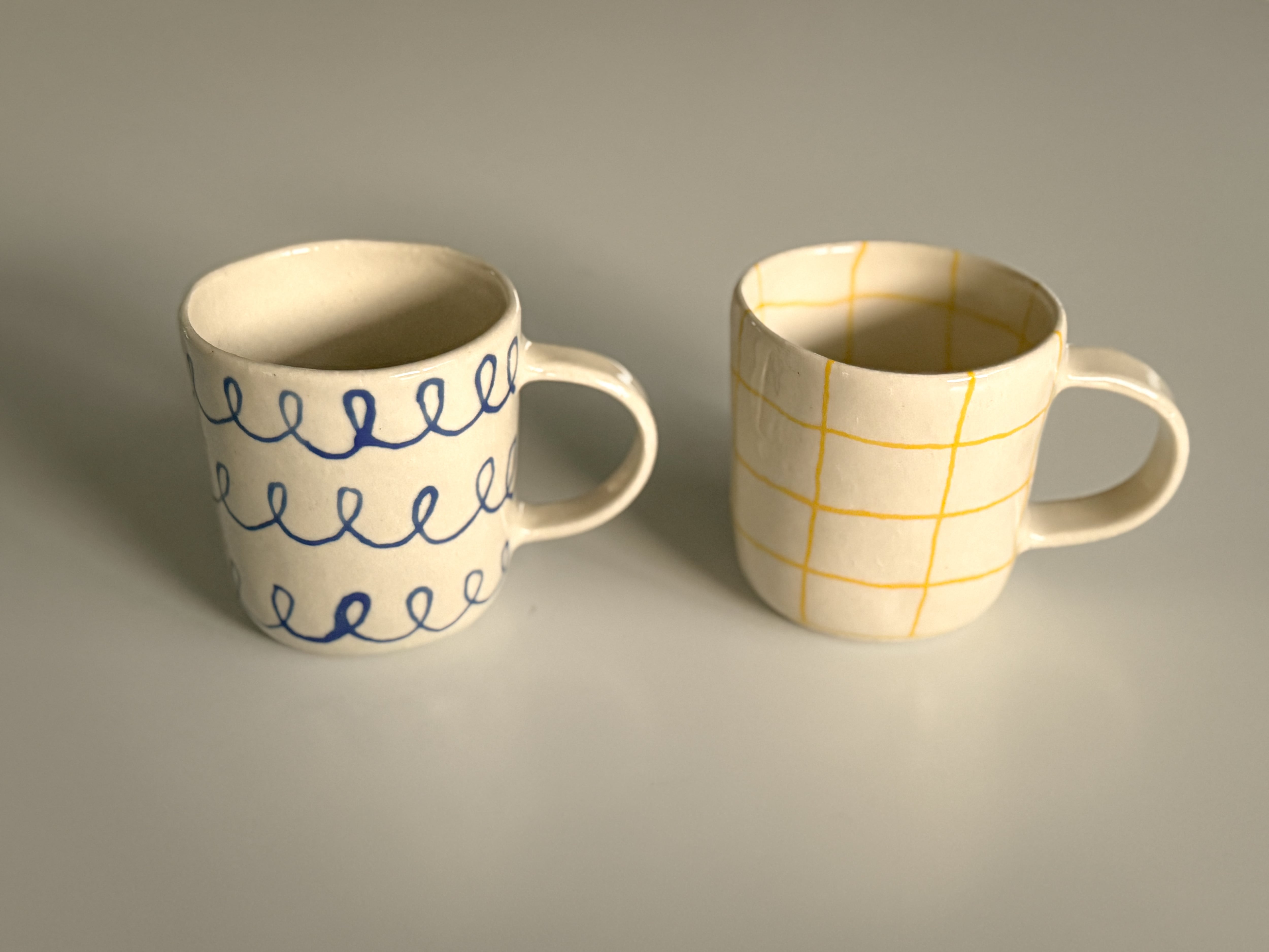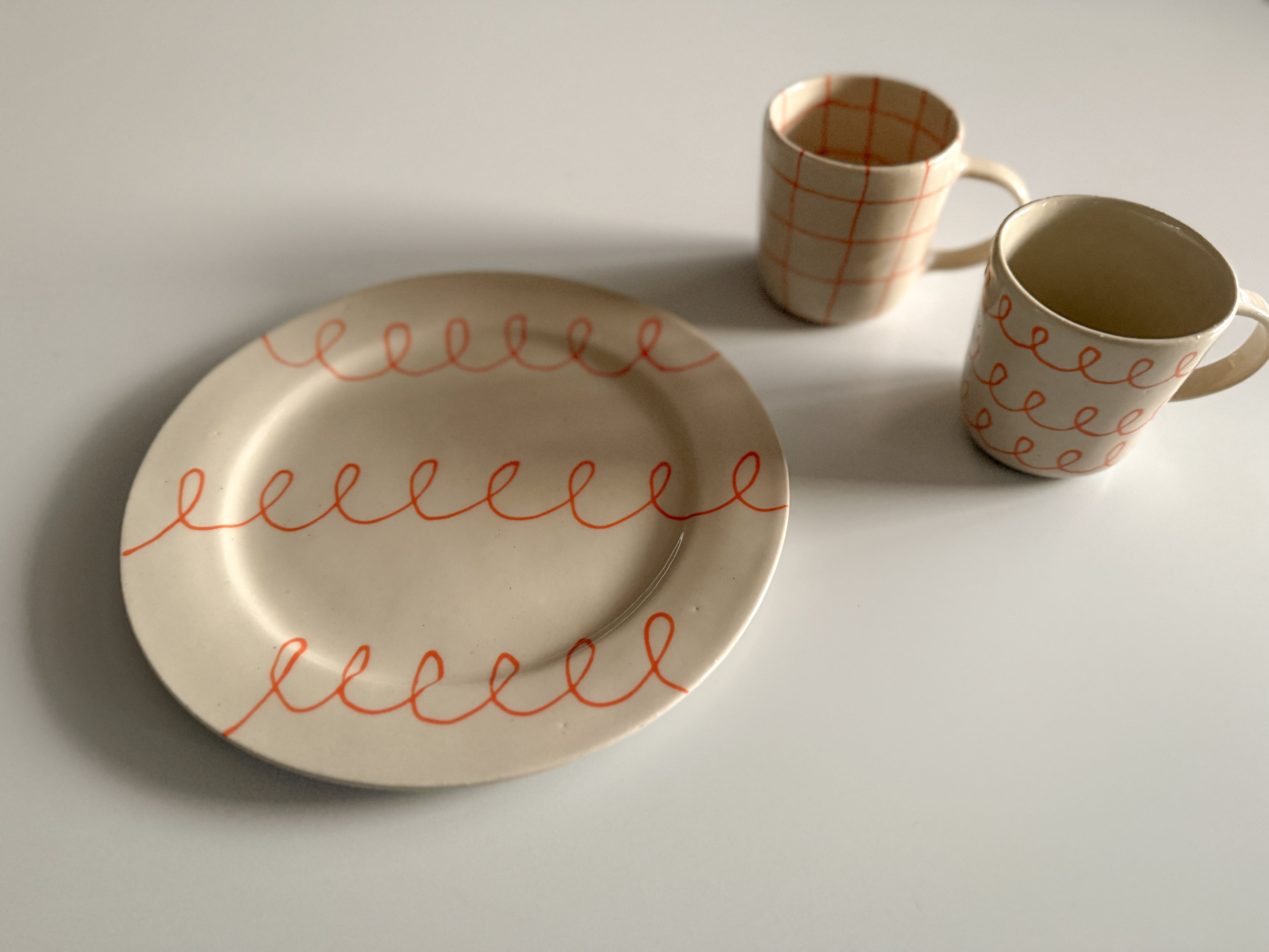 ・マグカップ オレンジチェック/オレンジくるくる/ブルーくるくる/黄色くるくる